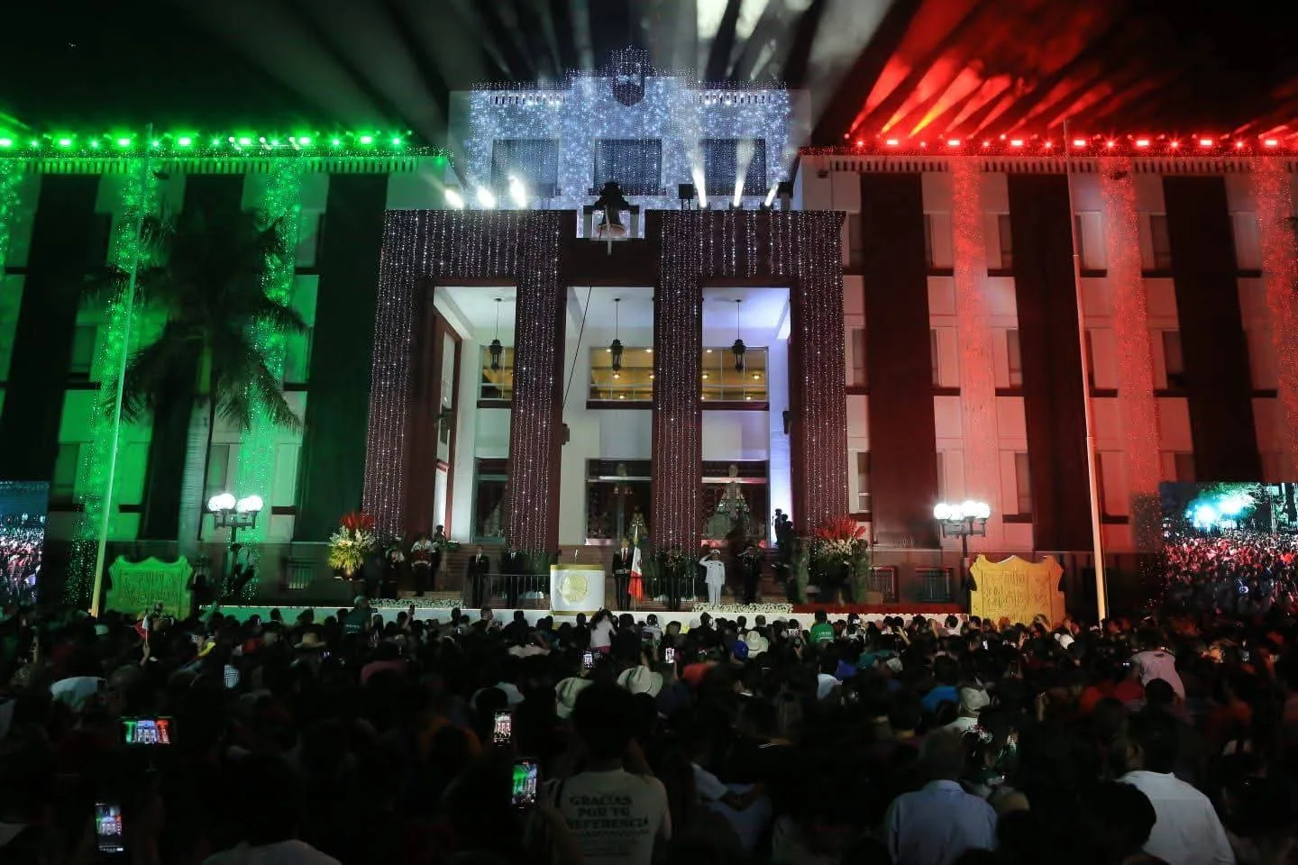 Ciudad Victoria, Tamaulipas.– Miles de familias tamaulipecas se reunieron la noche del 15 de septiembre en la Plaza Juárez de la capital del estado para conmemorar el 215 aniversario del inicio de la Independencia de México. El evento fue encabezado por el gobernador Américo Villarreal Anaya, quien, desde el Palacio de Gobierno, pronunció el tradicional Grito de Independencia ante una multitud entusiasta.