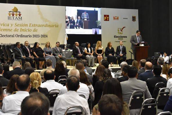 Tamaulipas, 11 de septiembre de 2023 – El Instituto Electoral de Tamaulipas (IETAM) dio inicio al proceso electoral 2023-2024, marcando un hito de 28 años de servicio en la organización de elecciones imparciales y transparentes. La ceremonia inaugural contó con la presencia del Lic. Juan José Ramos Charre, Consejero Presidente del IETAM, así como consejeras y consejeros electorales, autoridades gubernamentales y líderes judiciales.