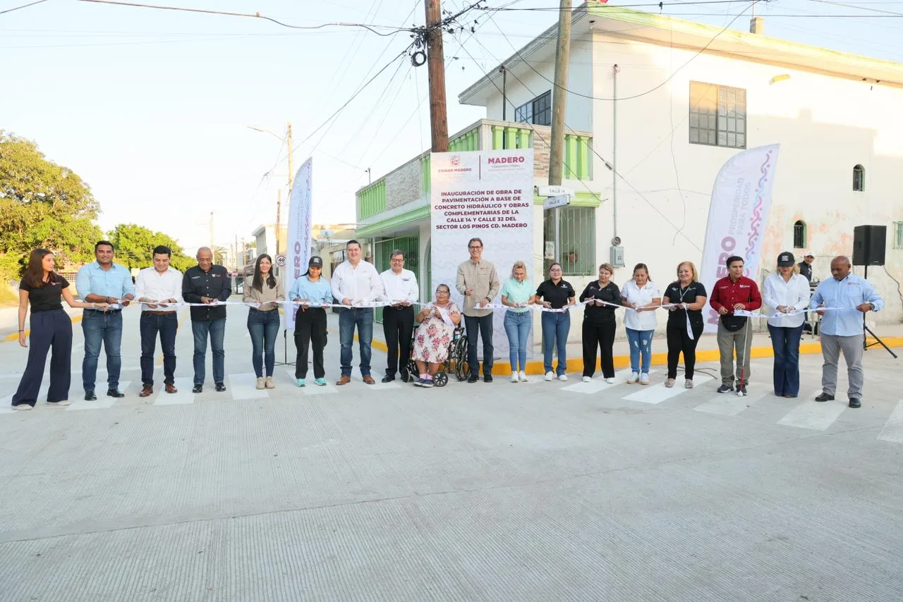 Erasmo González reiteró que “en Ciudad Madero se trabaja sin descanso y se avanza con más acciones en diversos puntos del municipio, donde se realizan obras a base de concreto hidráulico, para que las familias transiten con mayor seguridad.”