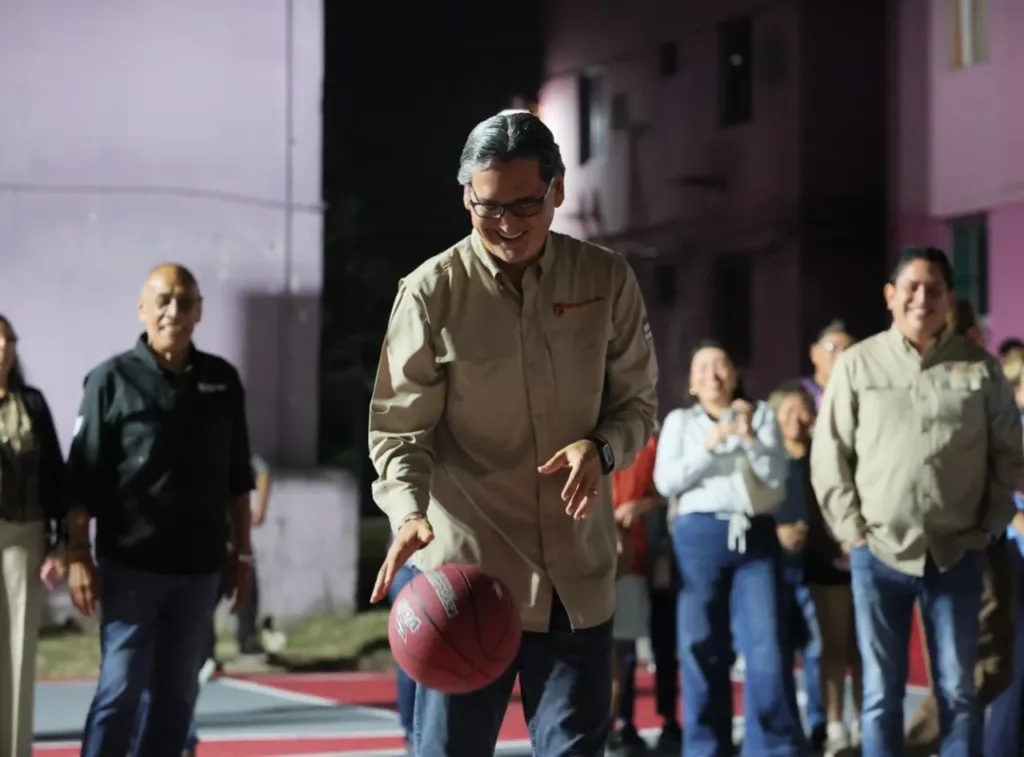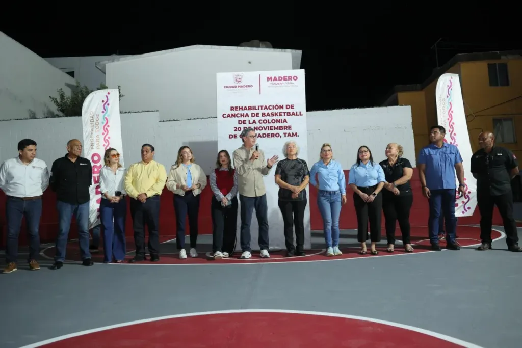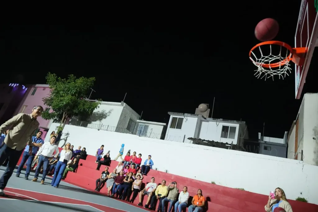 El presidente municipal Erasmo González Robledo inauguró la rehabilitación integral de la cancha de básquetbol en la colonia 20 de Noviembre, transformando un espacio deteriorado en un área deportiva segura e iluminada. Esta obra, ejecutada por administración directa, abarca 240 metros cuadrados y forma parte de una estrategia municipal para recuperar espacios públicos que fomenten el deporte, la sana convivencia y hábitos saludables entre niños, jóvenes y adultos.