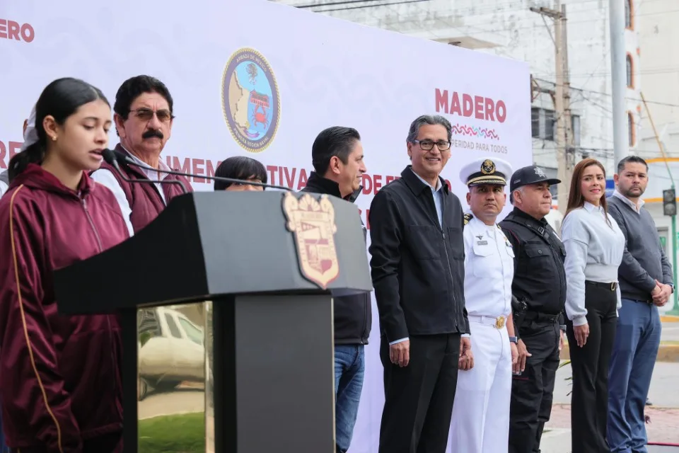 González refrendó trabajar con apego a la ley, transparencia y responsabilidad para un mejor México, Tamaulipas y Ciudad Madero. Exhortó a conocer la historia y símbolos patrios para formar ciudadanos participativos. La ceremonia inició con izamiento de bandera, Himno Nacional y Himno a Tamaulipas.