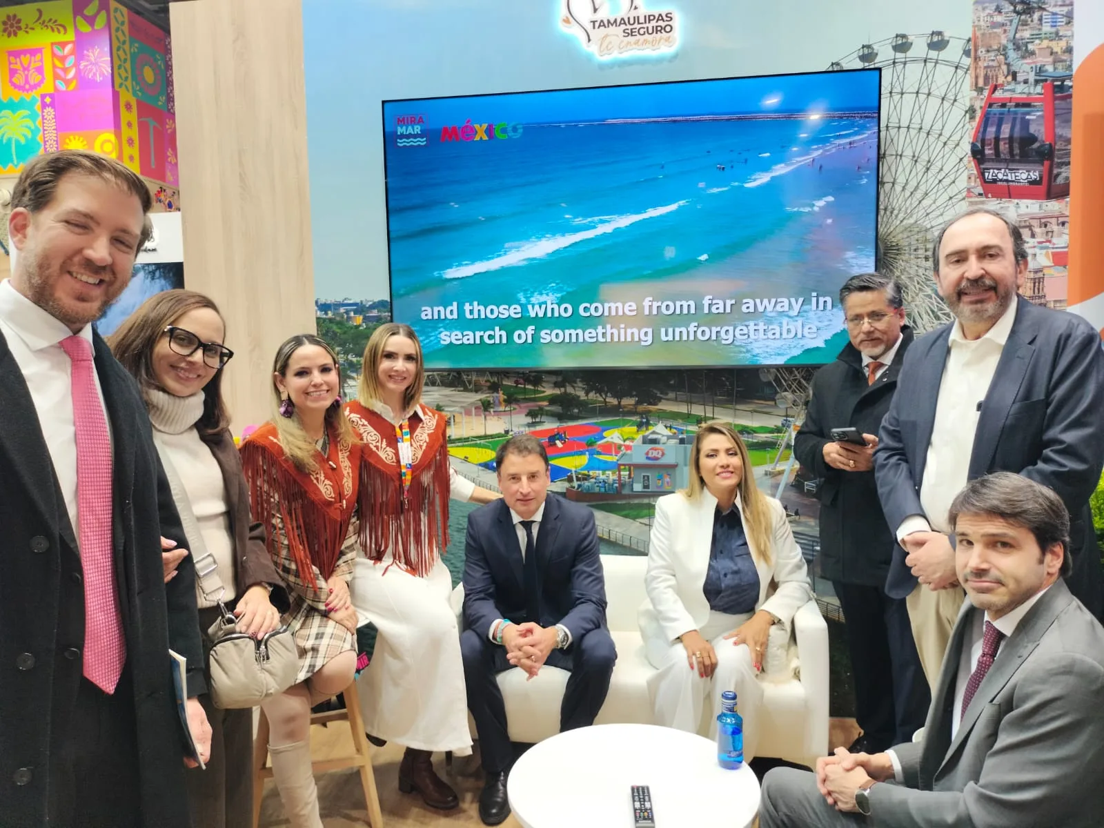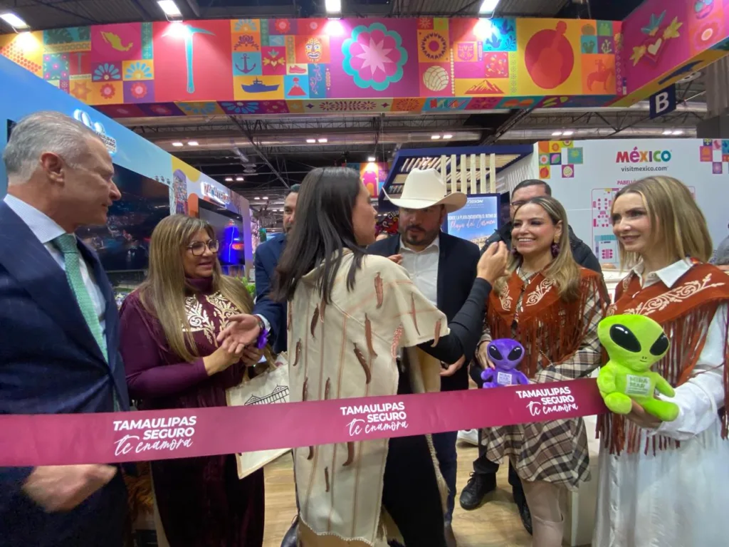 Dentro del pabellón de México, el stand de Tamaulipas recibió la visita de la secretaria de Turismo federal Josefina Rodríguez Zamora, donde se destacó la presencia de autoridades que representan a los principales municipios de la región, entre ellos Ciudad Madero, Tampico, Altamira y Tula, reforzando la coordinación interinstitucional para promover los atractivos turísticos del estado.