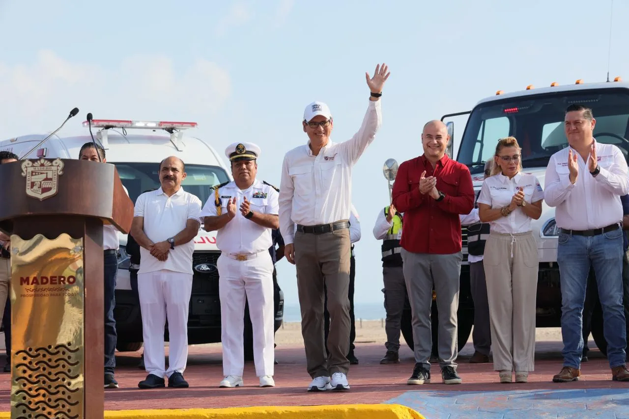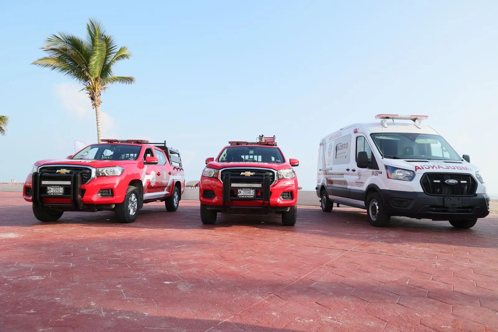 Erasmo González detalló que la inversión total supera los 20 millones 773 mil 787 pesos, provenientes del programa Fortamun del ejercicio 2025, y se ejecuta en dos etapas claramente definidas. En la primera etapa, presentada en Playa Miramar, se aplican 8.4 millones de pesos en equipamiento, mientras que en diciembre se entregará un paquete adicional por 12 millones 14 mil pesos, que contempla una ambulancia de urgencias básicas valuada en 2.6 millones de pesos, dos camiones de ataque rápido por 9 millones y una unidad de inspección estimada en 350 mil pesos.