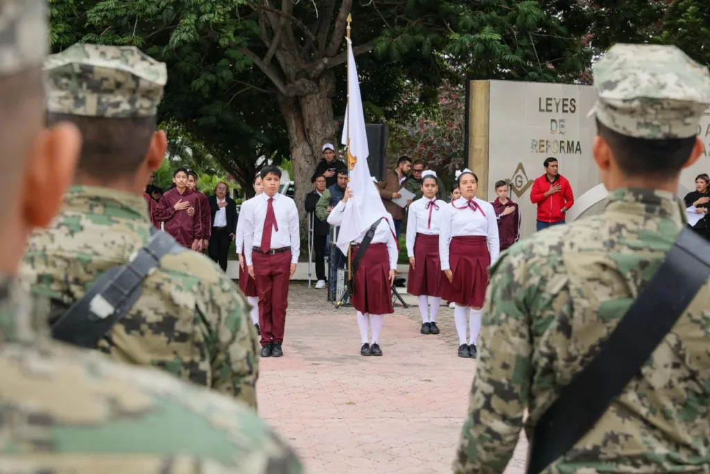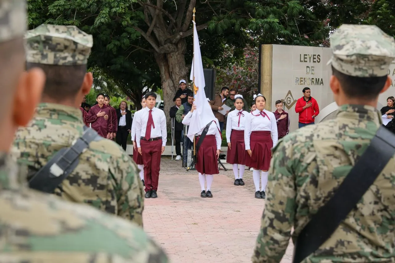 Antes estudiantes de la Escuela Secundaria Técnica No. 3 “Ing. Luis Hidalgo y Castro”, el munícipe manifestó que “conocer nuestra historia y nuestros símbolos patrios es fundamental para formar ciudadanos conscientes, participativos y comprometidos con su comunidad y su país”.