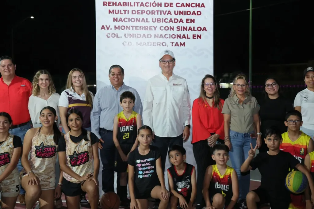Las familias de la colonia Unidad Nacional en Ciudad Madero celebraron la reinauguración de una cancha multifuncional que permaneció en desuso durante años y que hoy vuelve a convertirse en un espacio digno para la práctica deportiva. El presidente municipal Erasmo González, acompañado de su esposa, la presidenta del DIF Madero, Dunia Marón Acuña, así como de síndicos y regidores, encabezó este evento en el que destacó la importancia de contar con infraestructura adecuada para impulsar el deporte y la convivencia familiar.