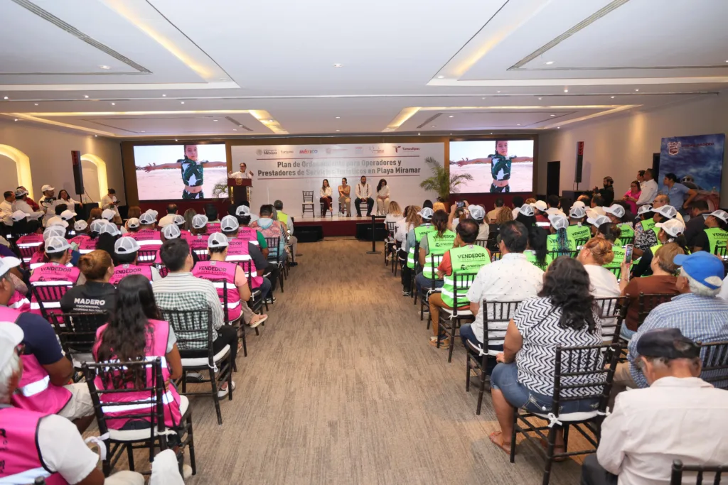 El presidente municipal Erasmo González Robledo, hizo un amplio reconocimiento a los esfuerzos colaborativos del Gobierno Federal y del Estado, para implementar a través de la secretaria de Turismo de México Mtra. Josefina Rodríguez Zamora, el Plan de Ordenamiento para Operadores y Prestadores de Servicios Turísticos de Playa Miramar, con el objetivo de asegurar una experiencia turística segura, ordenada y de calidad para los visitantes.