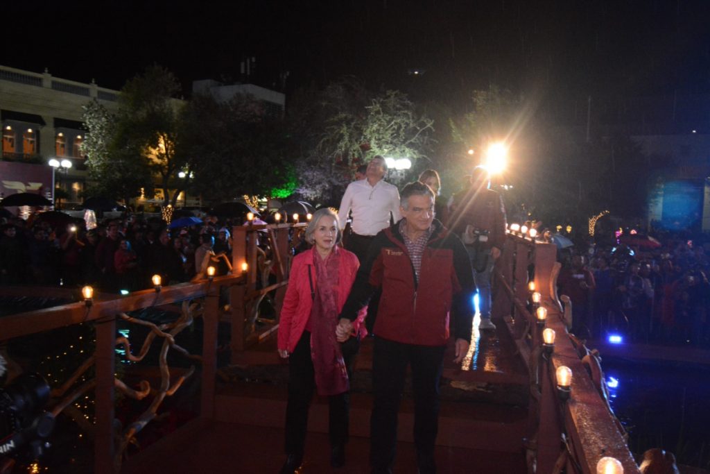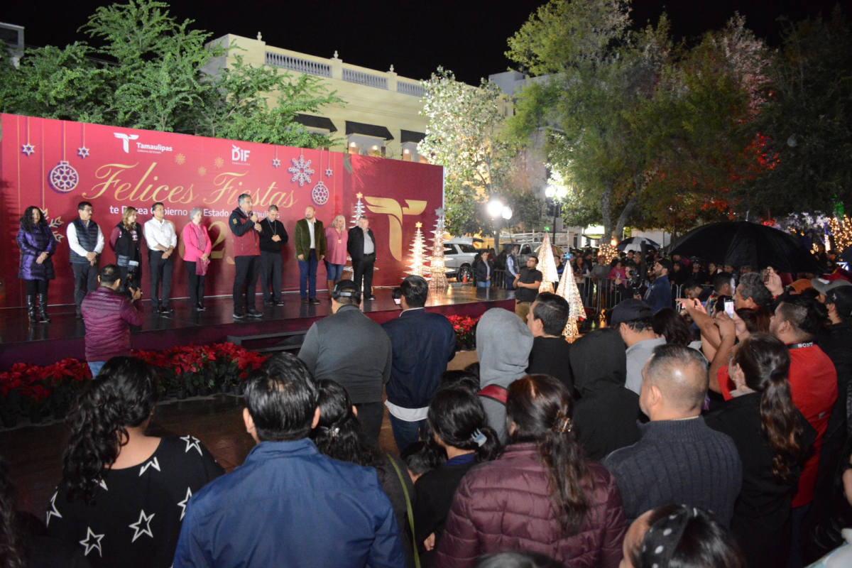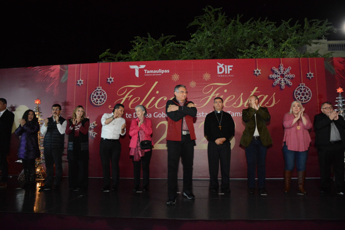 El gobernador Américo Villarreal Anaya y la presidenta del DIF Tamaulipas, doctora María de Villarreal, inauguraron la temporada navideña en el estado. Este domingo, encabezaron el encendido del pino navideño y la primera vela de adviento en una ceremonia realizada en la Plaza Juárez.