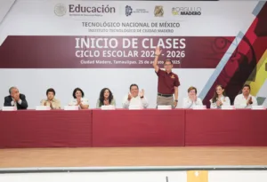 El presidente municipal de Ciudad Madero, Erasmo González Robledo, participó como invitado especial en la inauguración del ciclo escolar 2025-2026 del Instituto Tecnológico de Ciudad Madero (ITCM), donde reconoció a los estudiantes como un ejemplo de esfuerzo, disciplina y superación académica.
