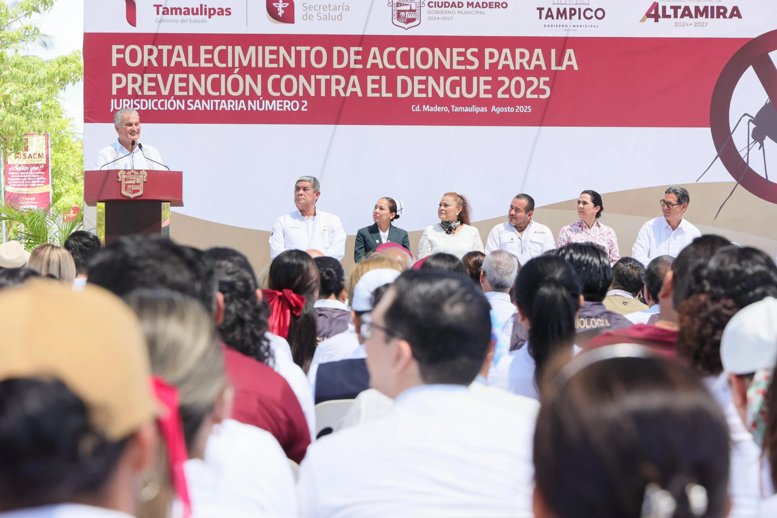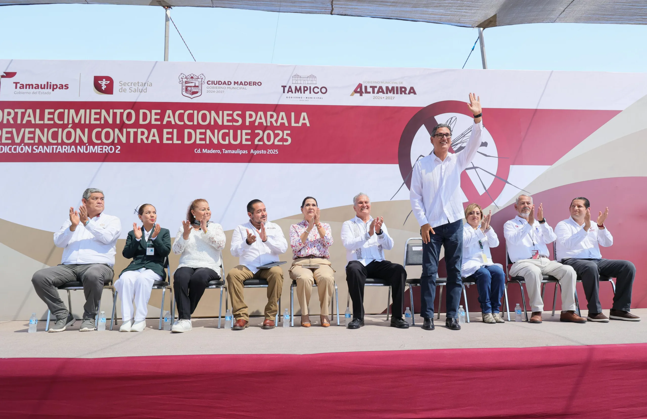 En el parque Bicentenario de Ciudad Madero se dio inicio al programa Fortalecimiento de Acciones para la Prevención contra el Dengue 2025, dentro de la Jornada Nacional de la Lucha contra el Dengue y otras Arbovirosis, que contempla también enfermedades como chikungunya y zika. El evento fue encabezado por el secretario de Salud de Tamaulipas, Dr. Vicente Joel Hernández Navarro, acompañado por los presidentes municipales de Tampico, Mónica Villarreal Anaya; de Madero, Erasmo González Robledo; y Rommel Martínez Flores en representación de Altamira.