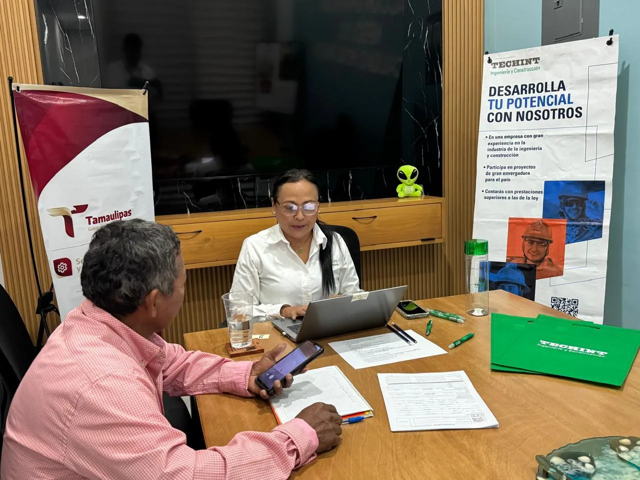 El módulo tuvo como objetivo principal acercar vacantes disponibles a la población que busca incorporarse al mercado laboral, fortaleciendo los lazos de colaboración entre el sector público y privado. Durante la jornada, se brindó atención personalizada a los asistentes, quienes tuvieron la oportunidad de conocer directamente las opciones de empleo ofrecidas por la empresa TECHINT, reconocida por su compromiso con la generación de empleos formales.