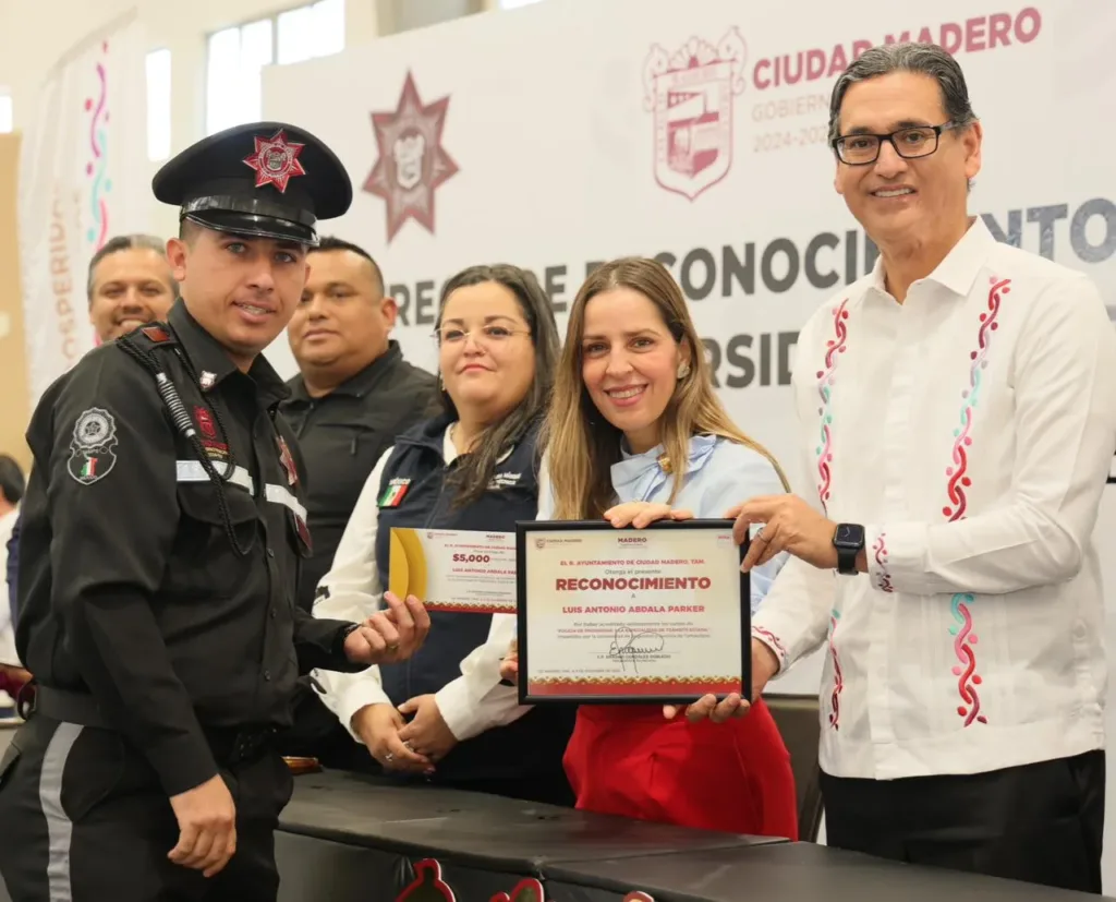 Acompañado por su esposa, Dunia Marón Acuña, presidenta del Sistema DIF Madero, y por autoridades educativas y militares, el alcalde subrayó que la profesionalización de los cuerpos de seguridad es fundamental para consolidar un modelo de servicio efectivo y ético.