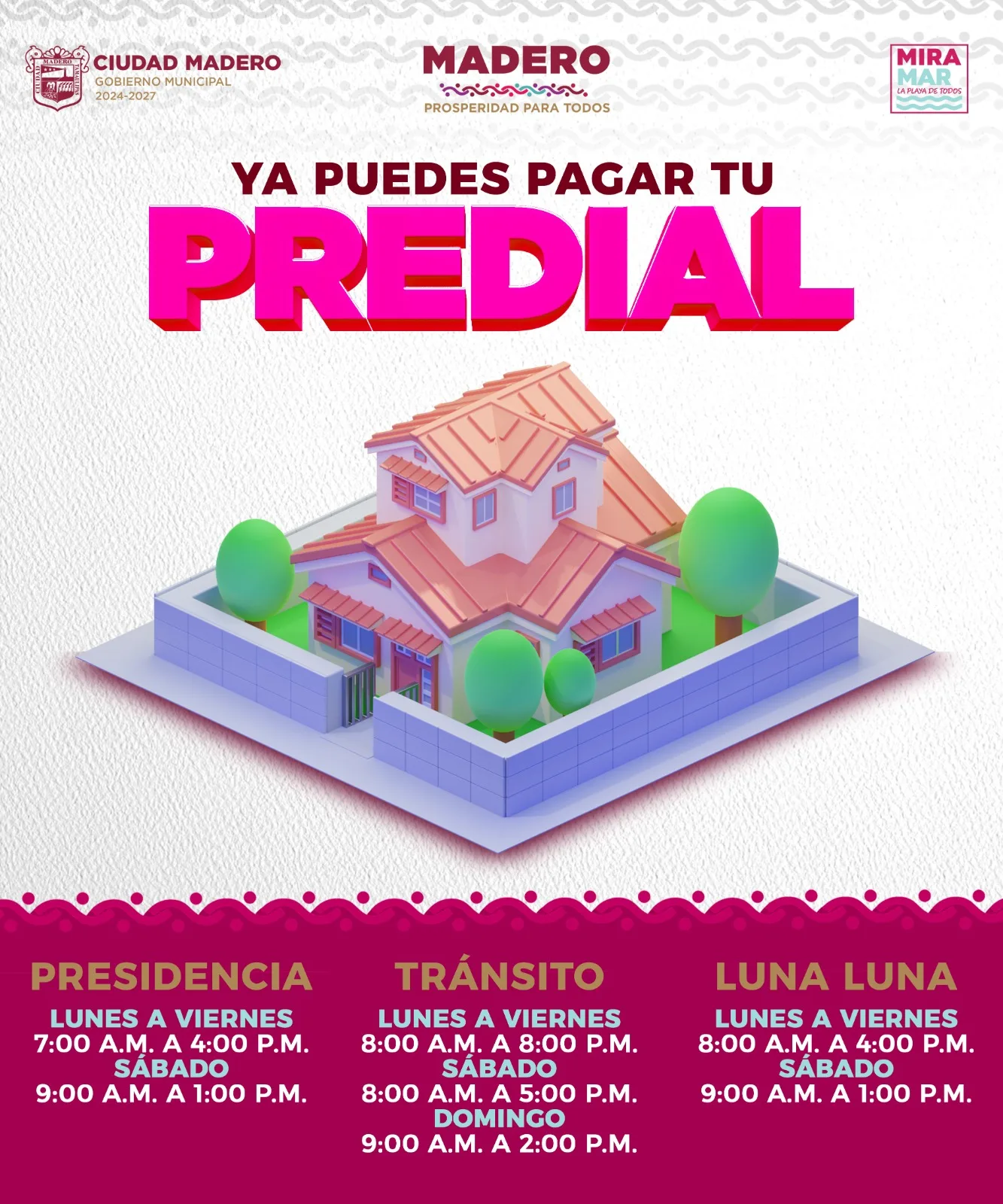 González Robledo destacó que en 2025 se logró una recaudación cercana a los 80 millones de pesos mediante el cobro del impuesto predial, por lo que para este nuevo periodo se busca rebasar ese porcentaje y aumentar los ingresos municipales. El alcalde recalcó que el pago oportuno del predial permite fortalecer las finanzas del municipio y se refleja en más obras, mejores servicios públicos y acciones que contribuyan al desarrollo y progreso de Ciudad Madero.
