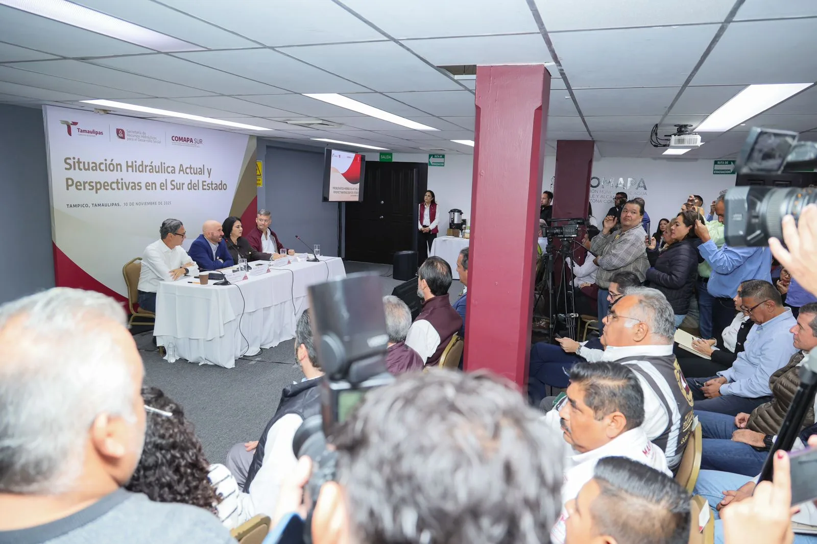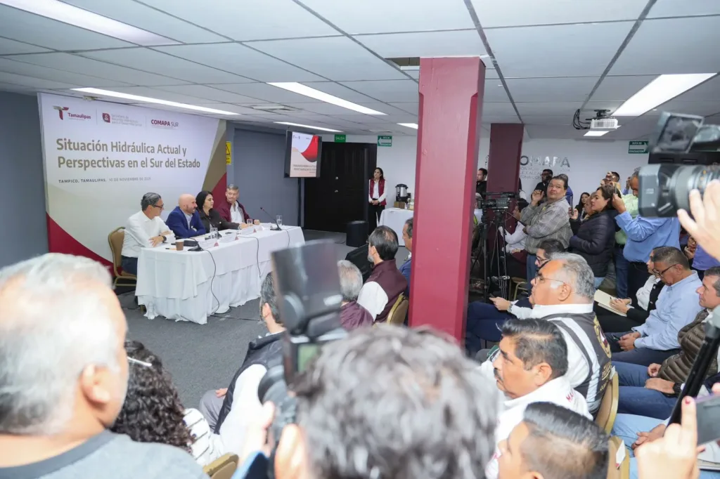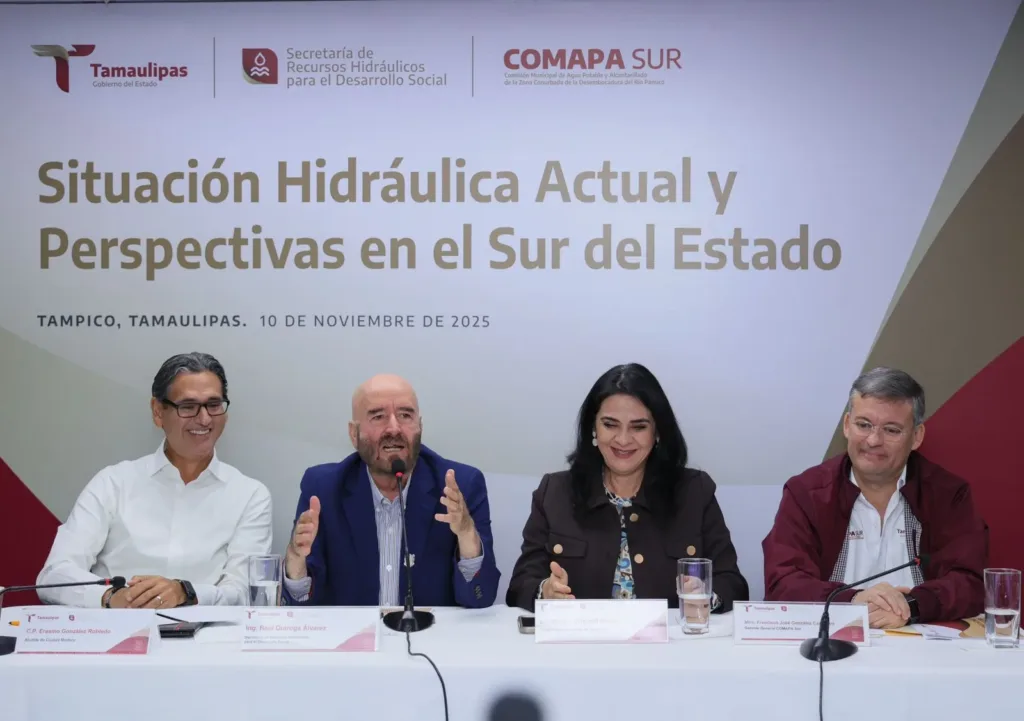 Durante el encuentro también participó la alcaldesa de Tampico, Mónica Villarreal Anaya, y el gerente general de la COMAPA Sur, Francisco José González Casanova, con el objetivo de establecer estrategias conjuntas ante la creciente problemática de socavones en la zona conurbada.