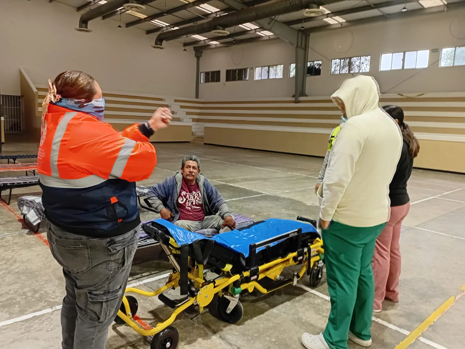 En el refugio se cuenta con personal médico y de asistencia social del Sistema DIF, así como brigadas de Protección Civil y Bomberos, para atender a las personas que arriben al auditorio. A quienes ya han sido trasladados se les proporciona alimento caliente, cobijas y atención médica básica, priorizando la salud y el bienestar de cada persona atendida.