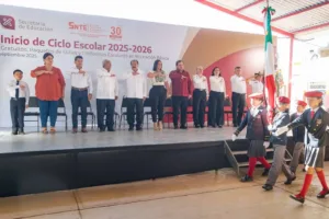 El ciclo escolar 2025-2026 en Tamaulipas arrancó oficialmente en Soto la Marina, con la entrega de más de 538 mil paquetes de útiles escolares, 48 mil uniformes y casi 4 millones de libros de texto gratuitos en todos los niveles educativos. En el evento, el secretario de Educación, Miguel Ángel Valdez García, en representación del gobernador Américo Villarreal, destacó que estos recursos son resultado de una inversión propia del estado, destinada a garantizar un regreso a clases digno y equitativo en los 43 municipios. El funcionario exhortó a estudiantes a aprovechar al máximo sus conocimientos y convivir en un ambiente de paz y armonía, reiterando el compromiso del gobernador para que la educación sea la base del desarrollo y la transformación social en Tamaulipas. La alcaldesa de Soto la Marina, Glynnis Jiménez Vázquez, y el director del plantel, Alejandro Villarreal, además de estudiantes y directivos, acompañaron la ceremonia, en la que se reafirmó el compromiso conjunto por una educación inclusiva y de calidad.