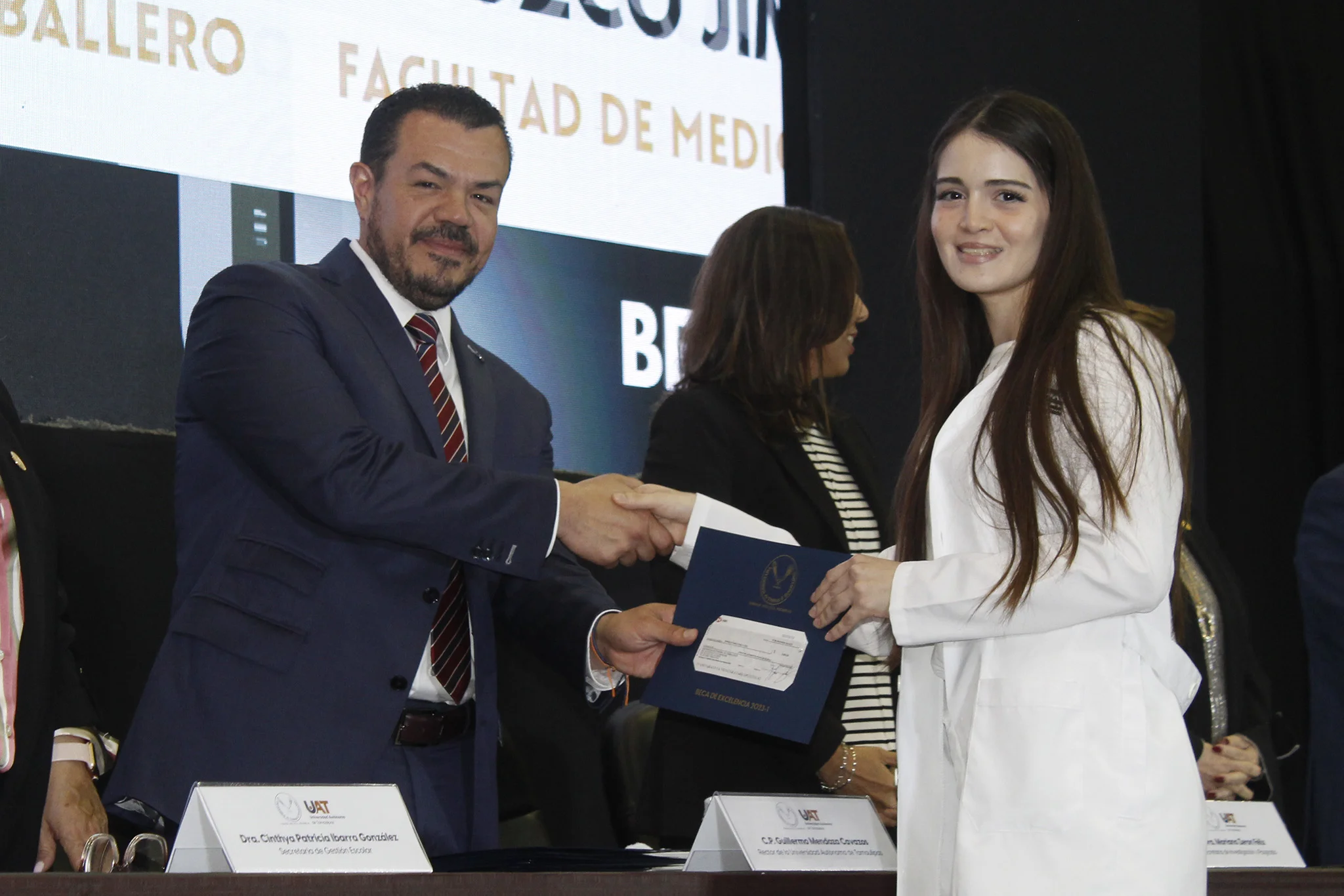 La ceremonia contó con la participación de diversas autoridades académicas de la UAT, incluyendo a la Dra. Rosa Issel Acosta González y la Dra. Mariana Zerón Félix, reafirmando el compromiso de la institución con el desarrollo académico y profesional de sus estudiantes.